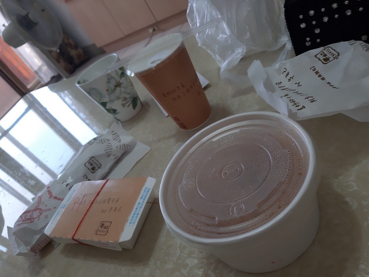 與小均吃享食,整理家裡,採買零食,煮粥,領貨