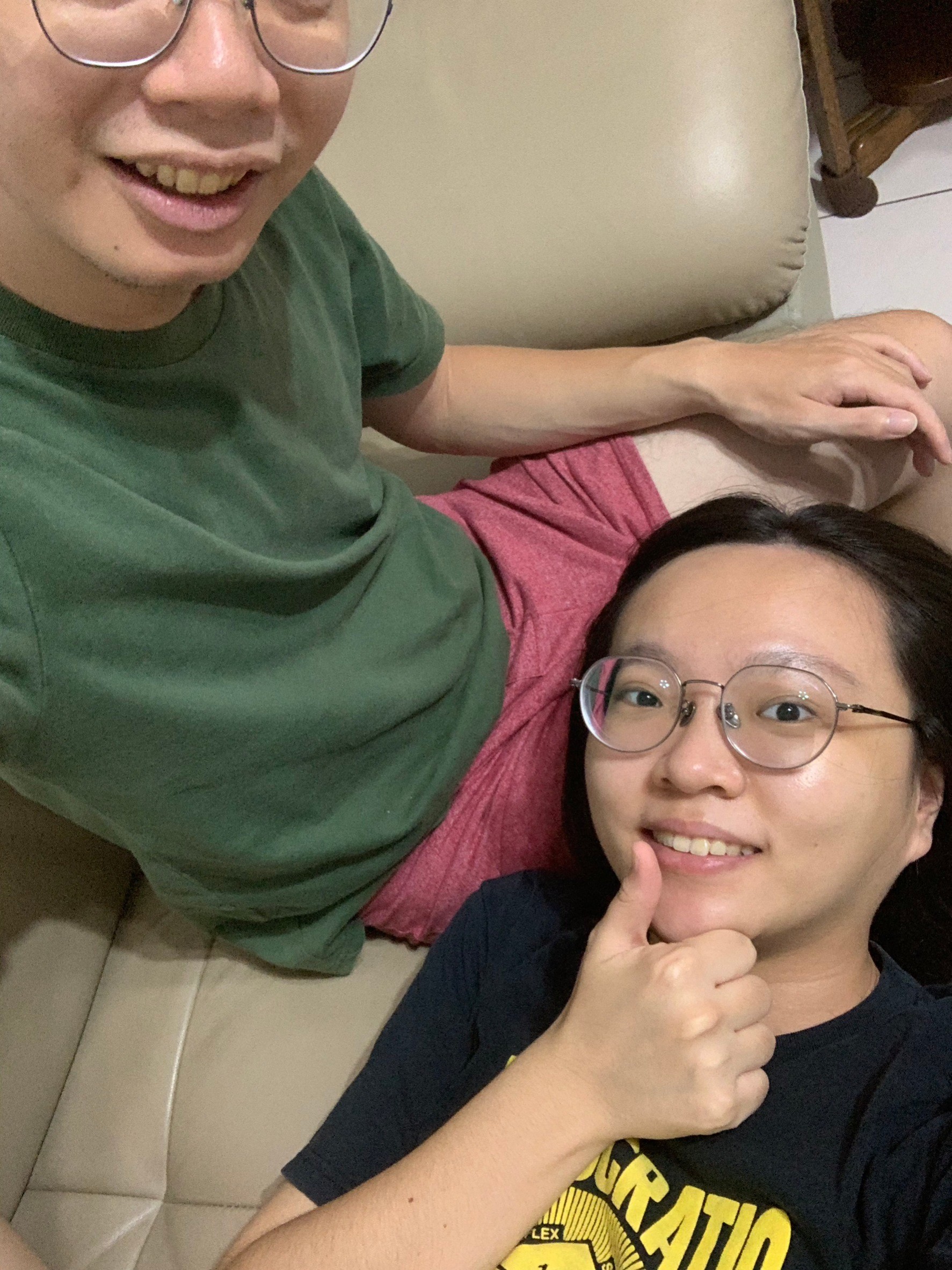 第一次邀請小金魚爸媽來家裡作客.哥哥心柔也來拜訪.吃披薩+刮刮樂.辭修公園散步掃街