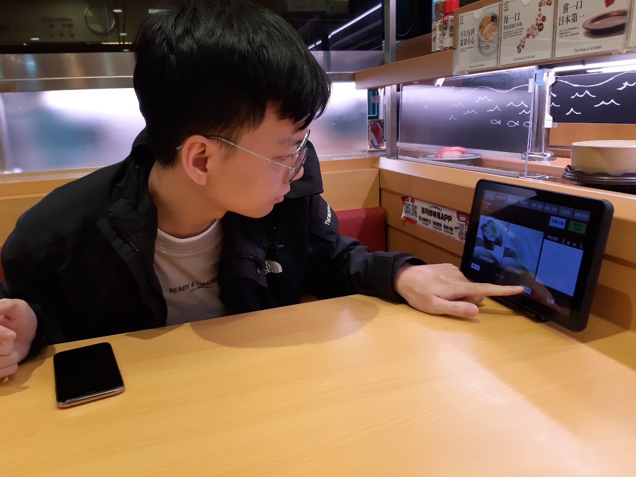 請假跟小均吃壽司郎,遠端看劇陪他,捕捉到野生胖達,吃八方