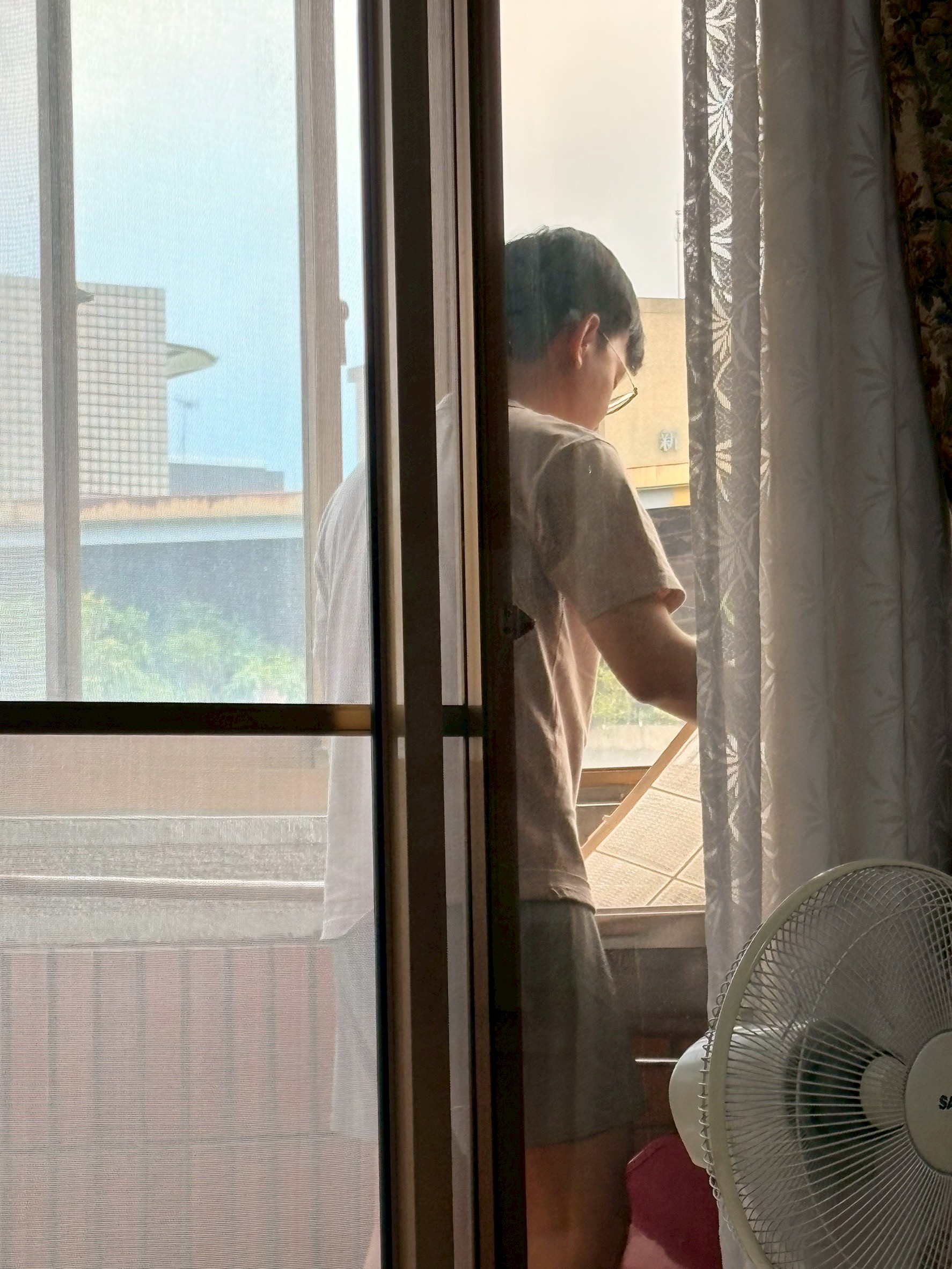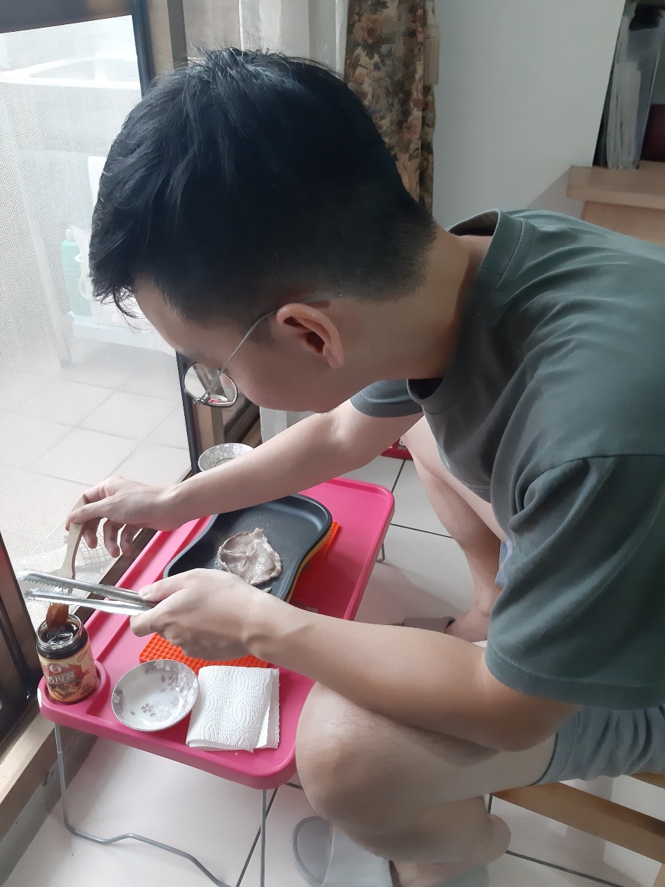 與小均初體驗電烤盤烤肉,整理小均的回憶文具卡片,試穿西裝太小,整理線,板橋治裝