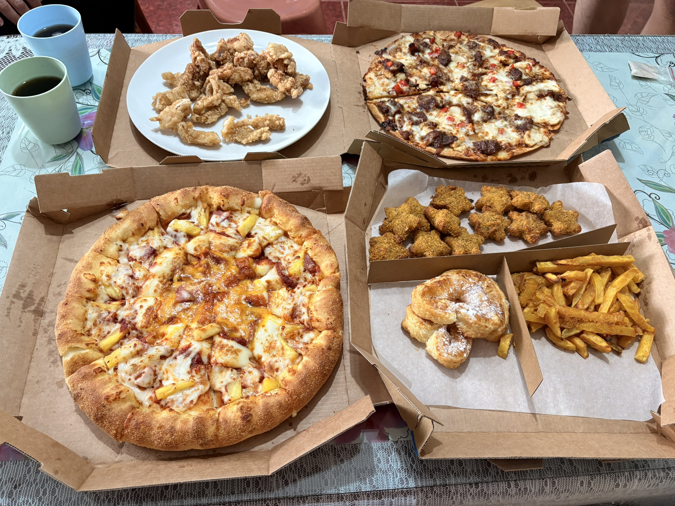 吃披薩慶祝自由,跟小均分母打麻將初體驗,地震,享受食光內用,採買,鑰匙好好好