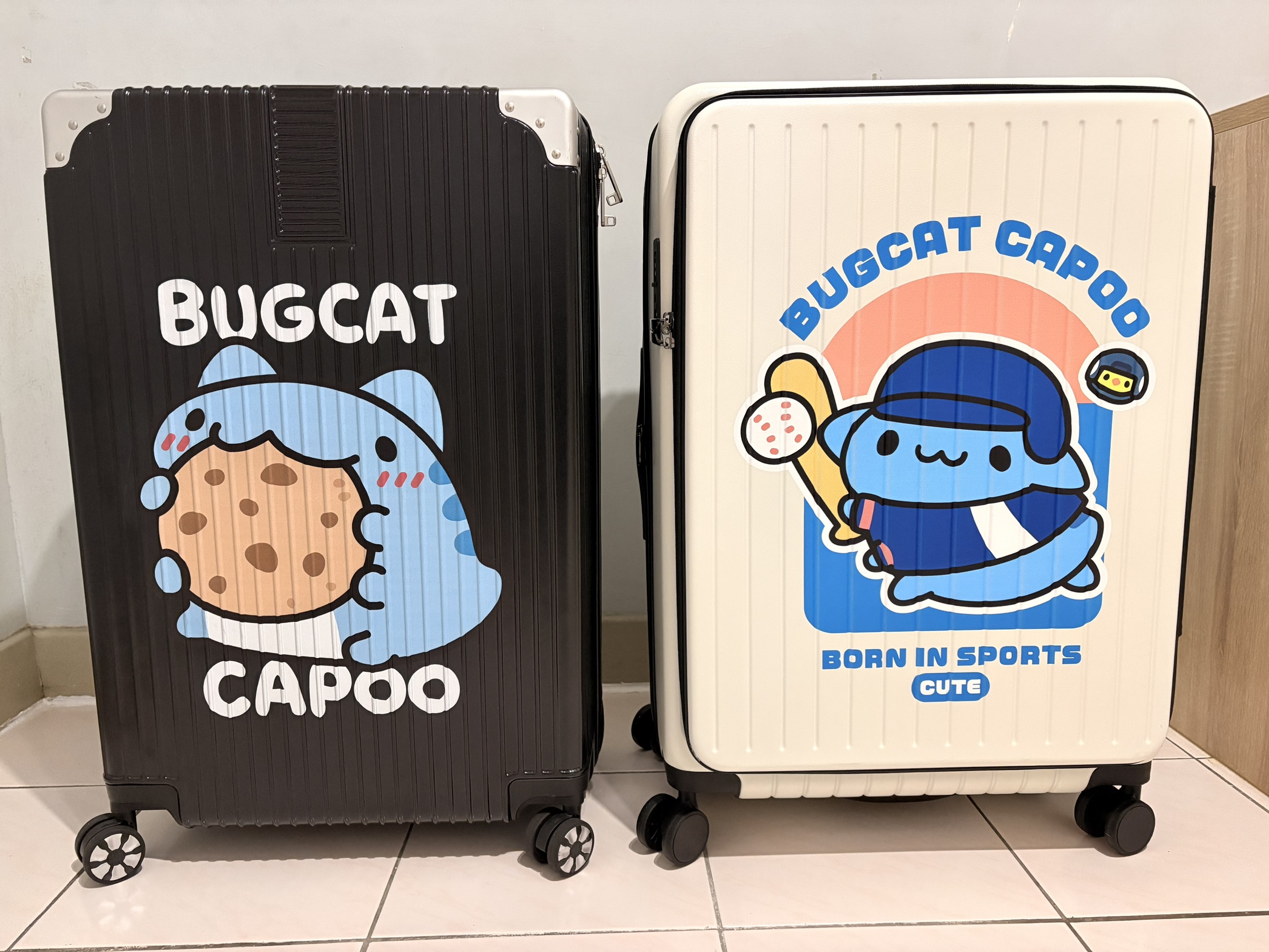 開箱新的咖波行李箱超好看超喜歡.小均睡覺用圍巾後終於不頭痛了讚讚